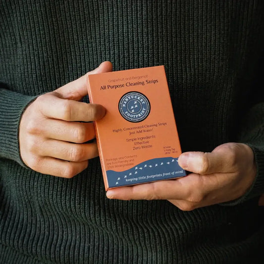 Did you know that your current All Purpose cleaner is almost certainly at least 95% water? With Nantucket Footprint All Purpose Cleaning Strips, you get all of the active ingredients you need in our super-concentrated strips.