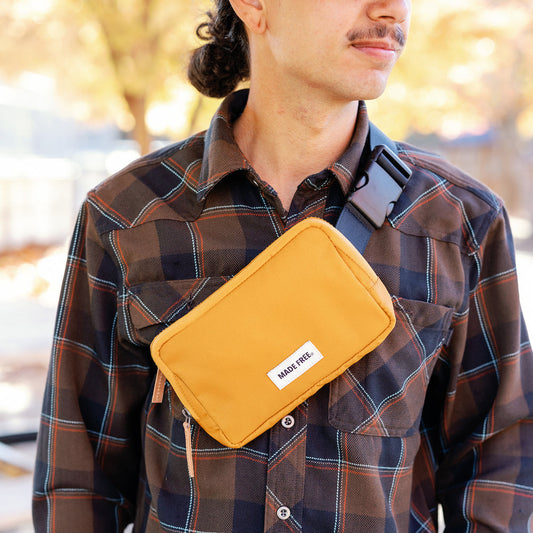 Vendor:MADE FREE®Regular price $38.00Regular priceUnit price perSale price $38.00Made with our durable weather-resistant recycled polyester and seatbelt material adjustable strap. Plenty of pockets and features to meet your minimalist needs for phone, keys, wallet and other items on the go. Includes a secure backside pocket.