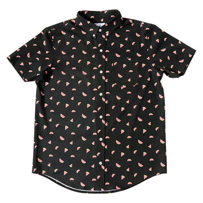 • This Performance Button Down Shirt is made out from a hybrid blend of recyclable polyester and lycra that makes it stretchy, breathable, and so comfortable you will never want to take it off. The fabric is wrinkle-free, so you can just put it on and hit the floor running. It is fast drying so if you accidentally spill an adult beverage on yourself while you hang out at a luau, beach bar, pool party or barbecue, there will be nothing to worry about. Talk about renewable!
