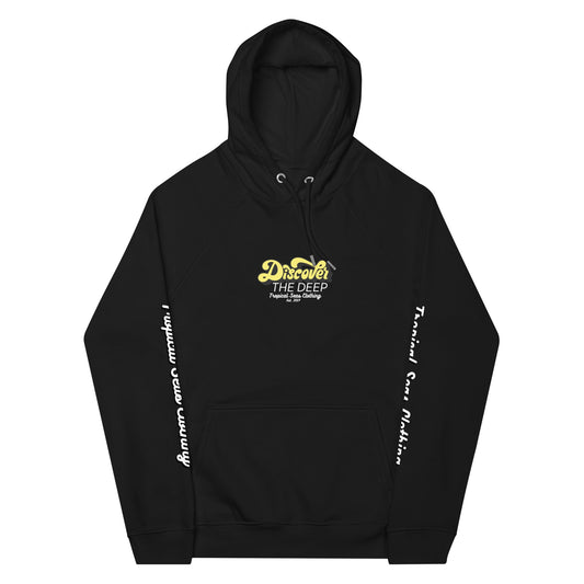 Show your love for the ocean and still stay comfy, dry, and warm with this organic essential eco hoodie. Great for all seasons, it’s made of 85% organic ring-spun combed cotton from America's Heartland and 15% recycled polyester. Carefully designed by a team of mischievous sea gods comprising Poseidon himself riding atop a sperm whale while holding a drink in one hand.