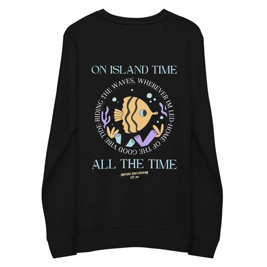 Make a statement. Stay cozy. Embrace Island Time, All the Time with our Unisex Organic Sweatshirt. Order yours today and join the ranks of those who believe in comfort, style, and a sustainable future.