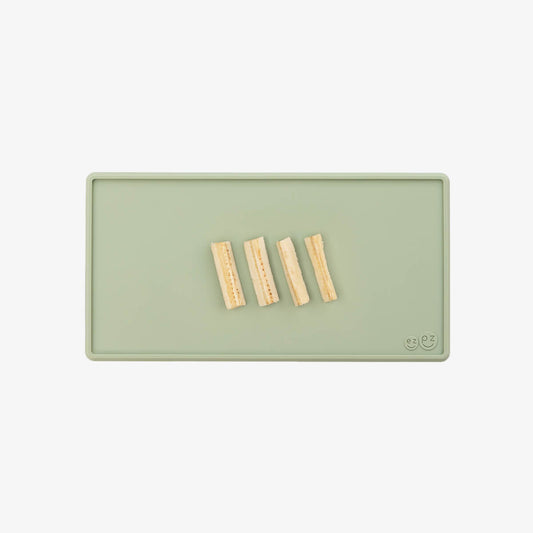 The Tiny Placemat is a non-slip, silicone placemat that fits on most highchair trays (including the Ikea Antilop). The placemat comes with a silicone travel band, which allows you to roll-up the mat and use it on the go!
