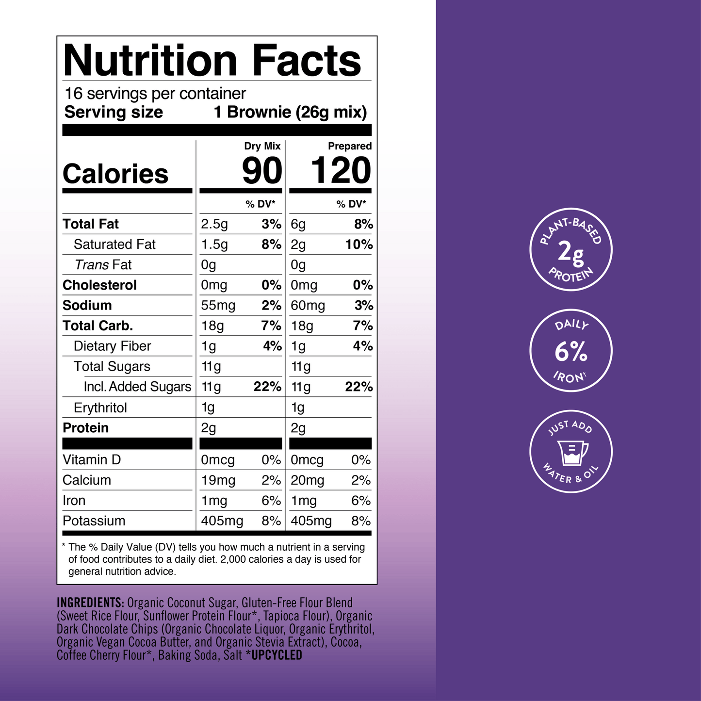 Bake Me Healthy Dark Chocolate Fudgy Brownie Plant-Based Baking Mix wholesale | Indulge in a rich, fudgy, incredibly yummy brownie. Made with allergy-friendly ingredients, this mix is packed with protein and fiber and naturally sweetened with coconut sugar to satisfy your sweet tooth. Bake Me Healthy Dark Chocolate Fudgy Brownie Plant-Based Baking Mix - Enjoy whipping up chewy, crispy, guilt-free brownies knowing that they’re made with upcycled ingredients that are better for you and the planet.