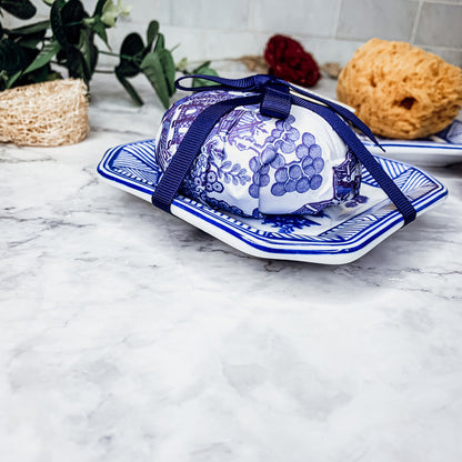 This gorgeous Chinoiserie inspired soap set is amazing in so many ways. You can split it up into 2 gifts or keep for yourself. As the soap will last quite sometime. While using it, you can use the dish as a soap dish or use it for many other things such as a Trinket Tray, Jewelry Dish, Tea Dish, Decorative Base, etc.