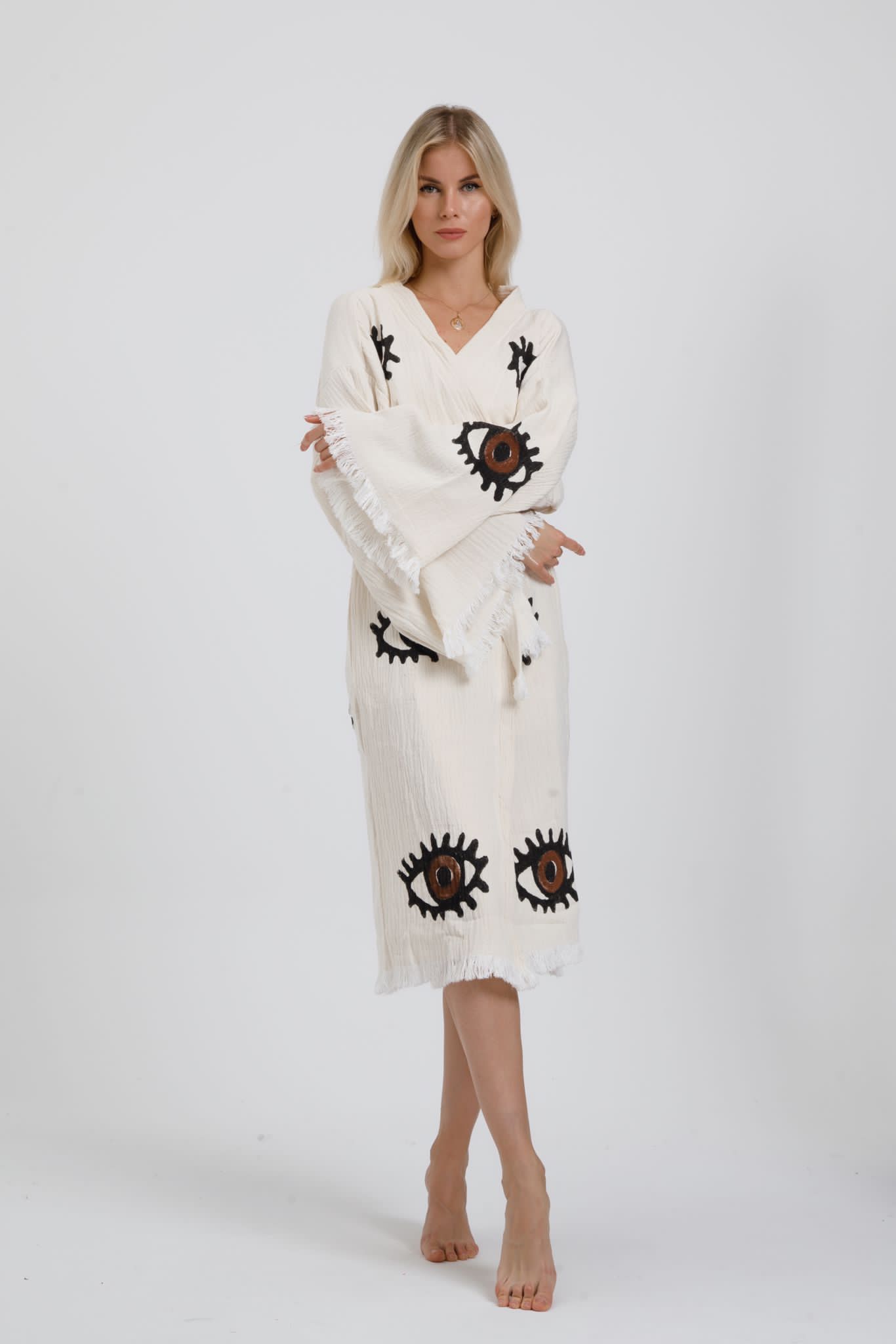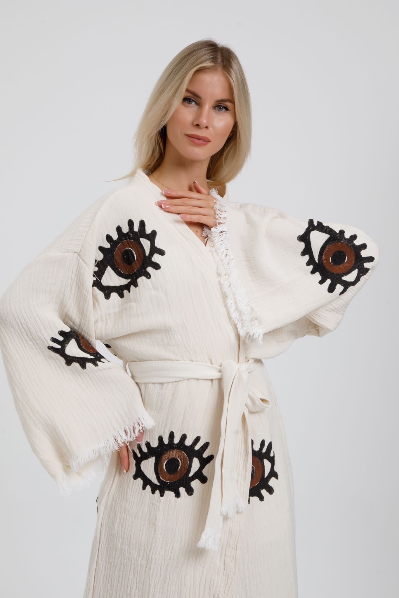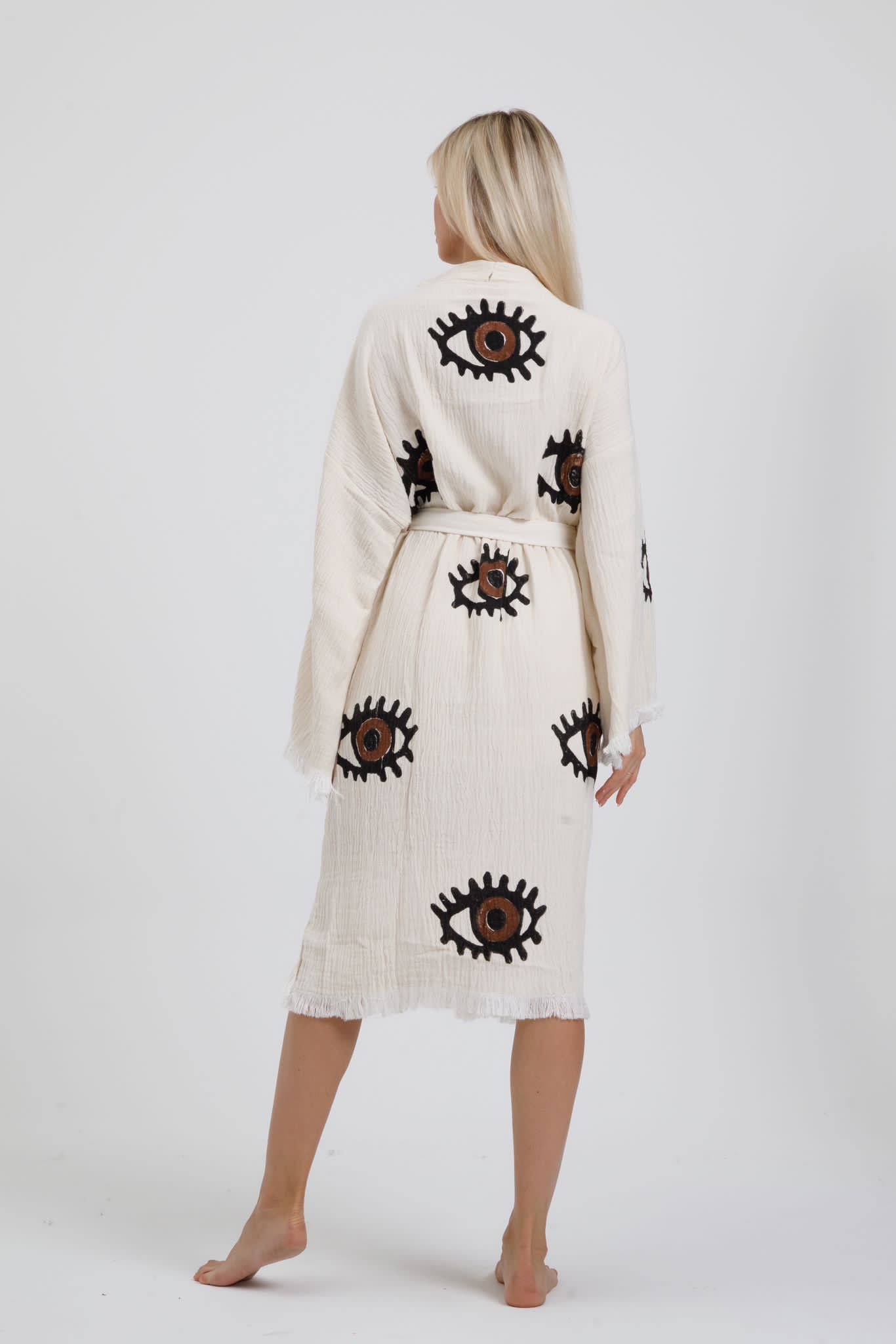 Super soft, fluffy and breathable kimono/robes are made of hand woven muslin fabric and prints are handcrafted with natural dyes, making the boho kimono gentle on your skin and the environment.