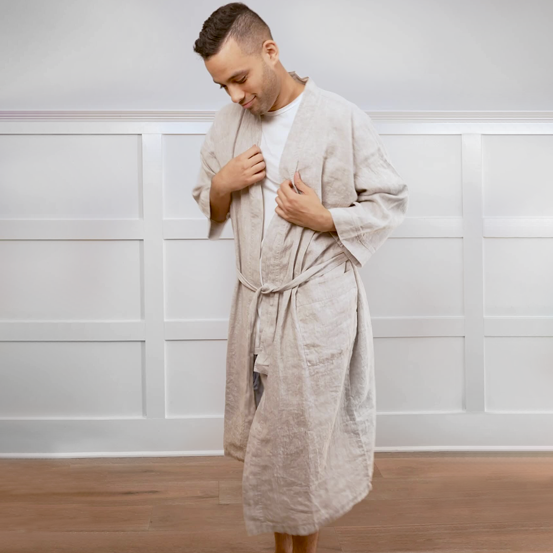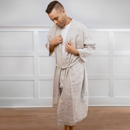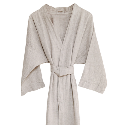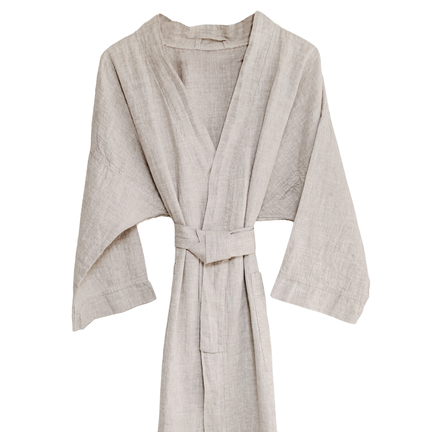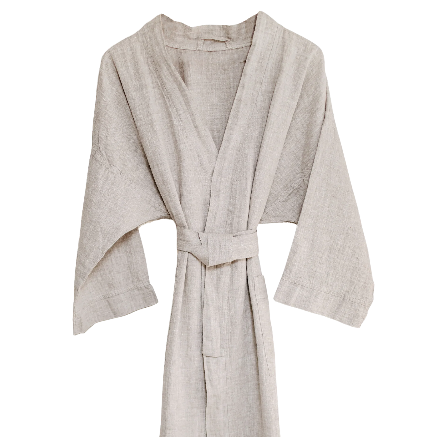 This bathrobe is made with softened light and breathable linen, and perfectly fits for use after showering or home lounging.