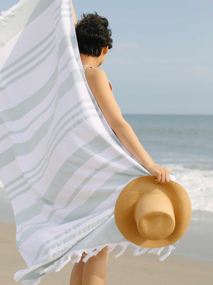 Understated luxury in classic stripes and pleasing hues finished with a playful fringe. Our classically designed Turkish towels are plush, eye-catching, and envy-inspiring. Use these towels for a picture-perfect beach day, or to elevate your everyday bathing ritual with a chic set of inviting colors.