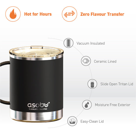 Vendor:ASOBU®Regular price $35.00Regular priceUnit price per$29.99Sale price $35.00A classic mug with an innovative twist. The Black Ultimate Mug is with easy-to-clean ceramic coating that doesn't alter the flavor of your delicious coffee. Constructed of double-walled, vacuum-insulated stainless steel, the Ultimate Mug features a splash proof slide-to-close lid, an easy-grip handle, and a high quality, powder coat finish.
