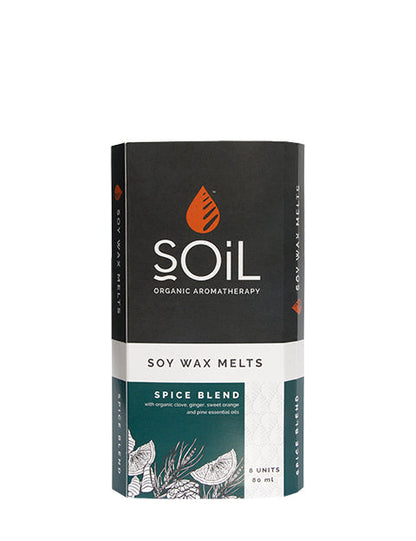 Soy wax melts are made using the finest quality soy wax and SOiL organic Spice Blend essential oils. Pure soy wax melts are healthier for you and the environment and so easy to use as well!Using the gorgeous aromas of pure essential oils in your home is so easy with SOiL Soy Wax Melts.