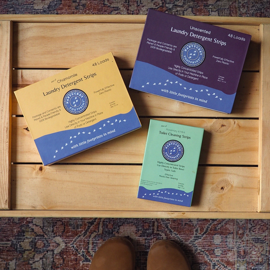 Using our strips is incredibly easy – just drop one in your toilet bowl, wait until it dissolves, brush, and flush - leave a few minutes longer for tough stains, rust or limescale buildup.. The strips also come in child-safe compostable (and recyclable and biodegradable) packages so you can worry less about leaving them around (of course it is still good practice to keep them out of reach of babies and pets!). With Nantucket Footprint zero waste toilet cleaning strips, you'll never dread cleaning your toilet again.