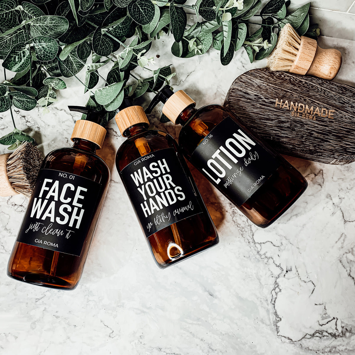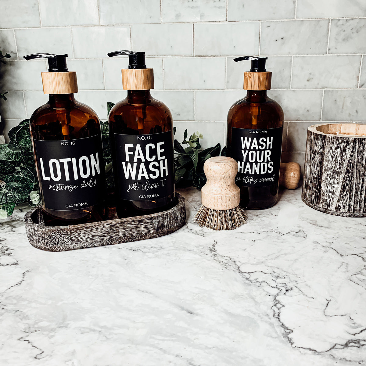 Spruce up your bathroom or kitchen countertop with these Glass Refill Bottles! Help save money and the planet by using refill bottles and add a touch of style to your home while doing it!