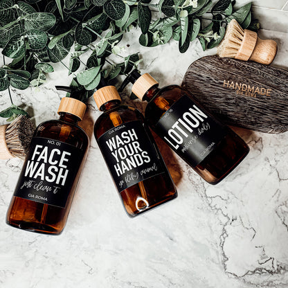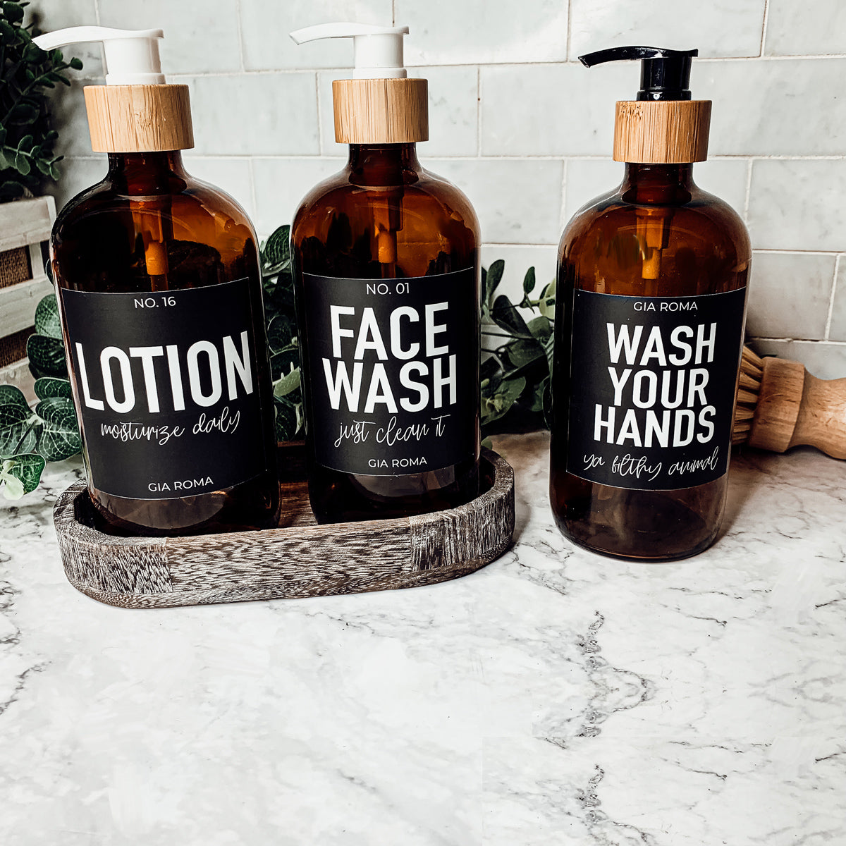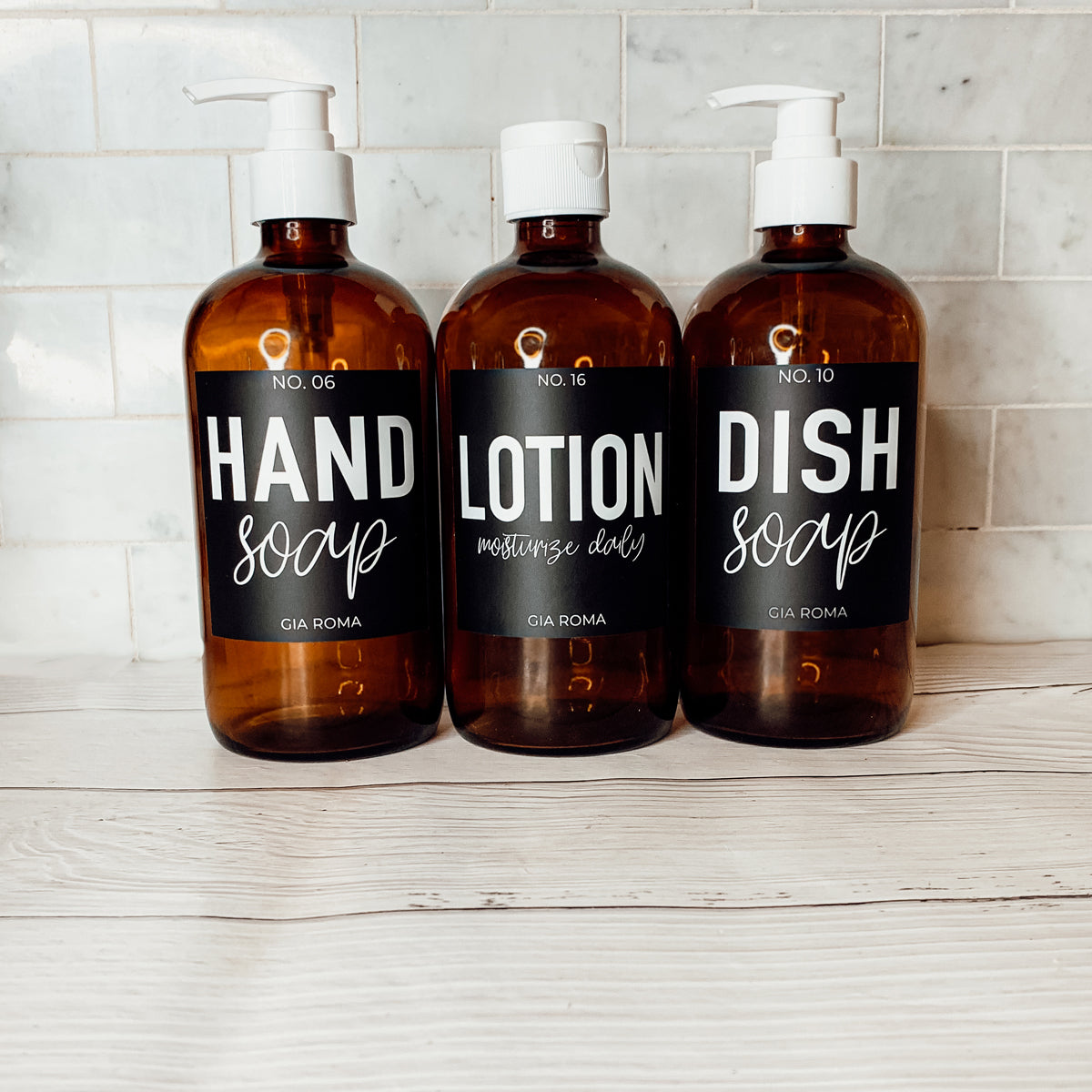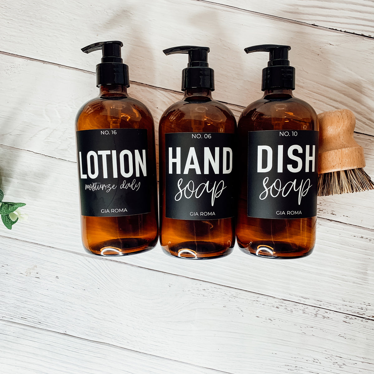 16OZ BOSTON ROUND AMBER GLASS SOAP BOTTLES - Black Label
