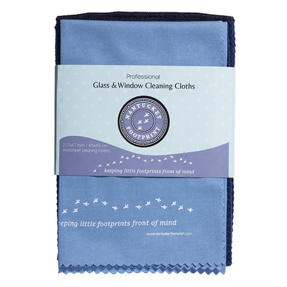 Nantucket Footprint's professional quality glass and window cloths are made to last - guaranteed for three years with normal use or 300 washes. Pair with our Glass & Window - Concentrated Dissolving Strips for professional-level, streak-free results. The two-cloth microfiber glass cleaning cloth set contains a generously sized chamois textured waffle cloth that effectively removes dust, dirt or grease from glass surfaces. The finer polishing cloth polishes surfaces to a remarkable streak-free shine.