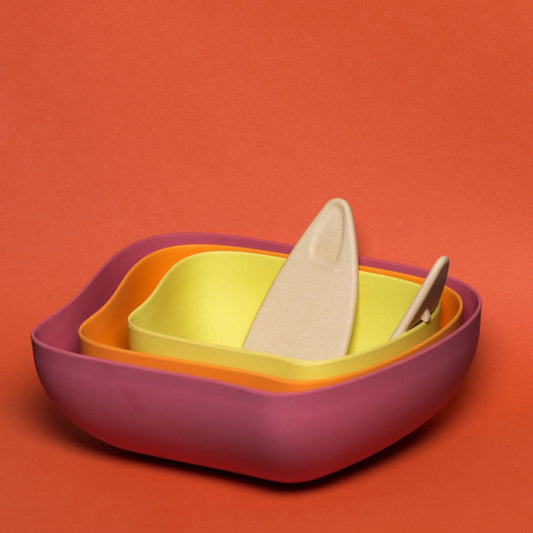 Vendor:Bamboozle HomeRegular price $25.00Regular priceUnit price per$60.00Sale price $25.00Made with our newest material, Astrik, the SustainaBOWL is a 3-piece mixing bowl set that is safe for both the dishwasher and microwave. It features a smooth tilting base for quick and easy pouring, an interior measuring tree, and ergonomic handle for maintaining control while using a hand mixer. The final product is sturdy. However, if you decide to throw it away it will compost into the Earth within 2-years.