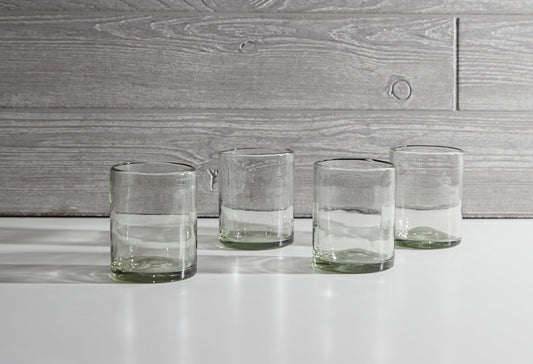 The best drinks are simple, understated, and no-fuss - and they deserve the perfect glass to match. Enter our Handblown Mexican Glasses in Clear. We work with a talented team of glassblowing artisans in Jalisco, Mexico to sustainably handcraft each piece of glassware. Each glass is handblown, and shaped while the glass is molten hot, preserving the unique character of each piece. Both the short and the highball size come in sets of 4, because no one wants to drink alone.