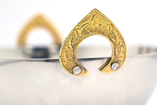 Craftsmanship meets culinary elegance with our traditional Handi Serving Bowl with Brass Handles. This single-walled stainless steel bowl stuns thanks to the detailed, traditionally designed brass handles that stun with every serving.