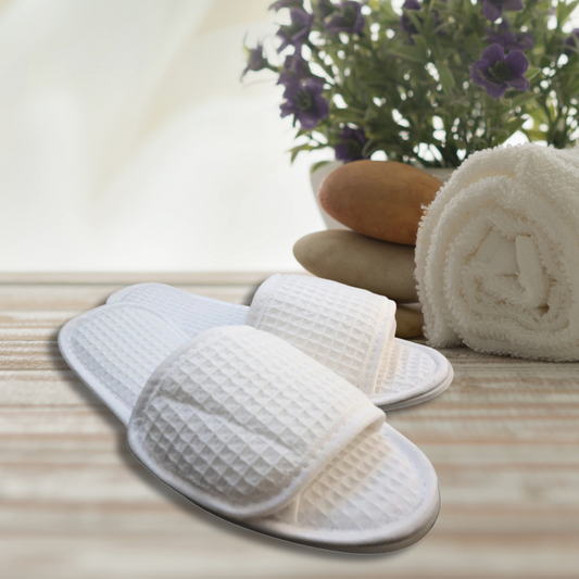 Vendor:Distinct Bath & BodyRegular price $15.00Regular priceUnit price perSale price $15.00These 100% cotton waffle spa slippers are great to slip into after your self care routine! In two neutral colors (White and Gray), match them with one of our robes and get the set!