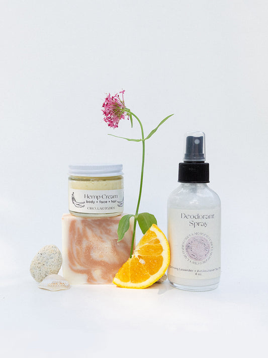 Vendor:Circular BodiesRegular price $58.00Regular priceUnit price perSale price $58.00The Back to Basics Kit is here to remind you that it is possible to take care of your body needs, naturally. Day-to-day care should be simple, healthy and accessible. With all that you need to shower, protect and moisturize your body, this kit is the perfect introduction to a zero waste routine, focusing on basic body, hair and skincare.