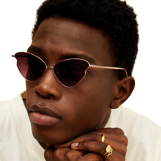 The CEO - Topfoxx X Megan Hannigan, is the third in collaboration with beauty guru, loving mother, and self-made boss babe Megan Hannigan. An edgy, geometric cat-eye frame as iconic as the NYC skyline, a sunny inspired by the belief that all women should feel empowered.