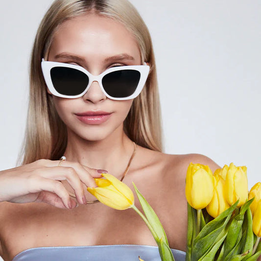 The CEO - Topfoxx X Megan Hannigan, is the third in collaboration with beauty guru, loving mother, and self-made boss babe Megan Hannigan.An edgy, geometric cat-eye frame as iconic as the NYC skyline, a sunny inspired by the belief that all women should feel empowered.