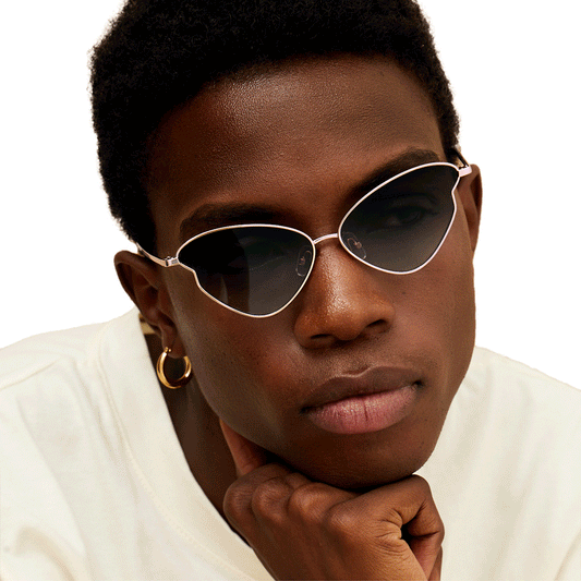 Luxe rimless frames in collaboration with Raya Coleman.Stunning rimless sunnies, fierce laser-cut lenses with a deep ombre fade.
