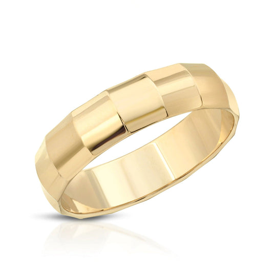 The Rowan is a tapered domed recycled brass ring.