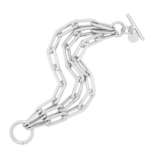 The Triple Gisele Toggle Bracelet is made from 2 layers of our extra large paperclip recycled brass chain, fastened with a with toggle clasp.