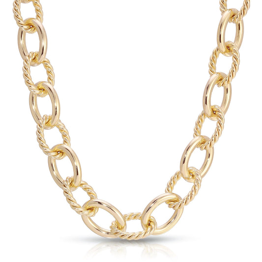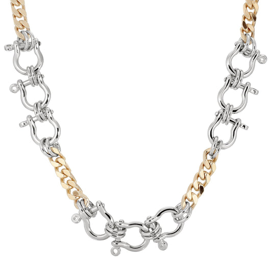 Our two-toned double curb chain necklace is made from our rounded curb chain. Its the perfect finishing touch to your look.