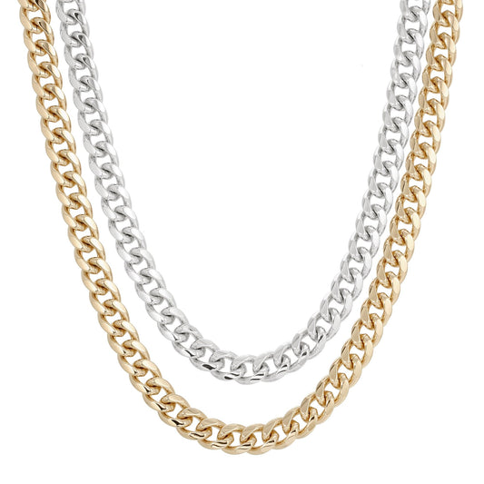 TWO-TONED DOUBLE CURB CHAIN NECKLACE