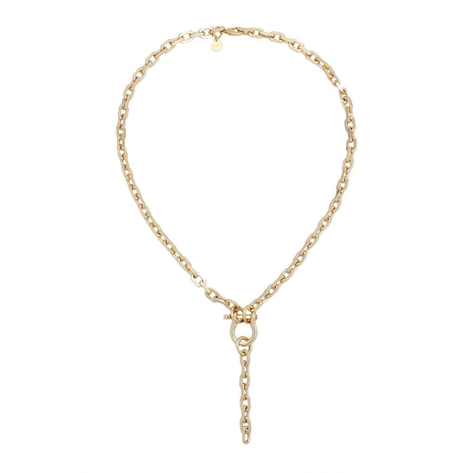 Medium Link Chain Lariat (Y Necklace) is recycled brass plated 14K Gold