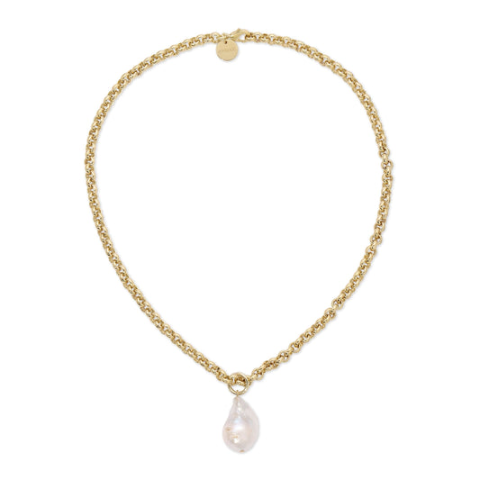 Micro Royal Chain with XL Baroque Pearl Pendant Necklace