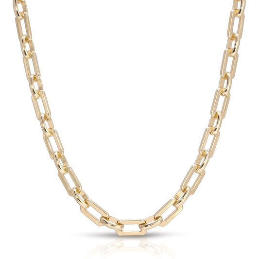 The Margaux Necklace is made from our U link chain fastened with a with a custom U link clasp. The necklace is a perfect stand alone piece, or care to make a statement? Pair it with any of our chains to make more of an impact.