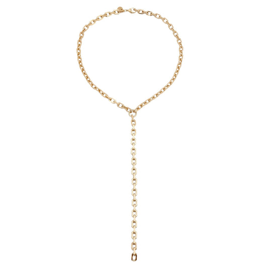The Gisele Lariat (Y necklace) is an extra large paperclip brass chain, fastened with a with lobster clasp.