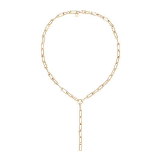 Large Rectangle Link Lariat (Y Necklace) is recycled brass plated 14K Gold