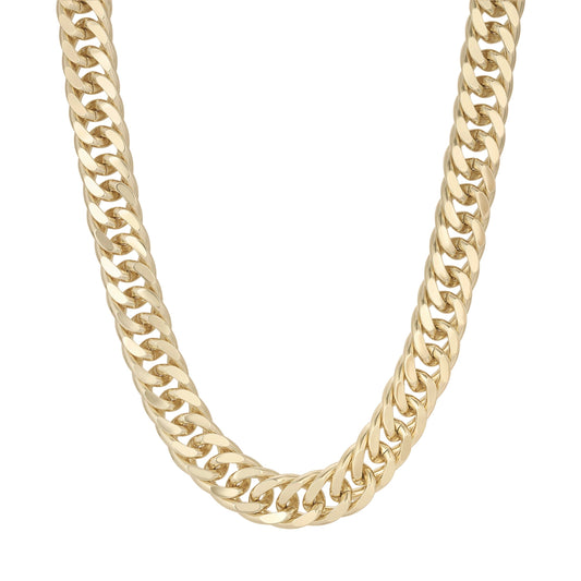 The Alana necklace is a thick rounded link chain, fastened with a with a lobster clasp.