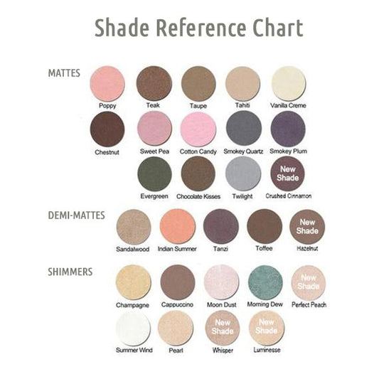 - Can use the darker shades as color coordinated Eye Liners by using our Eye Liner Brush and a small amount of water.