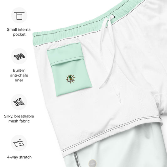 Dive into the ocean with style and sustainability in our Men's Sea Green Eco board shorts. Made with recycled materials, these shorts feature tropical and beachy colors perfect for any beach day. Designed by Tropical Seas Clothing, for ocean lovers.
