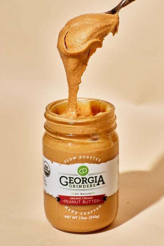 Vendor:Georgia GrindersRegular price $37.00Regular priceUnit price perSale price $37.00🐝 Organic 🔂 Simple Supply Chain 🥦 VeganGeorgia Grinders Peanut Butter consists of two simple ingredients: peanut and sea salt. We source Georgia Grown peanuts, slow roast them and grind to our signature texture in this CREAMY version.