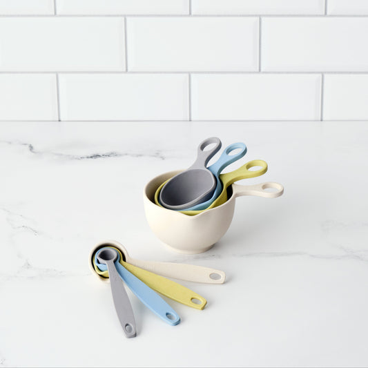 Mexican restaurants always have stunning glassware - so we made some of our own, with a twist. We work with a talented team of glassblowing artisans in Jalisco, Mexico to sustainably handcraft each piece of glassware. Each glass is handblown, and the color is applied while the glass is molten hot. Then, the glassware is cooled slowly in a hot oven to avoid shattering. There are no two identical pieces! The orange swirl set comes with 4 glasses, each with a unique design. The aqua set comes with 2 blue-white gradient glasses, and 2 blue swirl glasses.