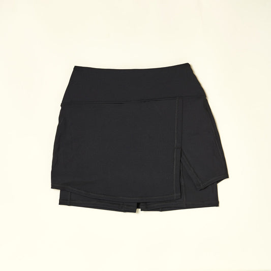 Made of 100% recycled poly, this versatile skort features a biker short layer base layer. A front slit allows free and easy movement and underneath a hidden pocket for anything you need.