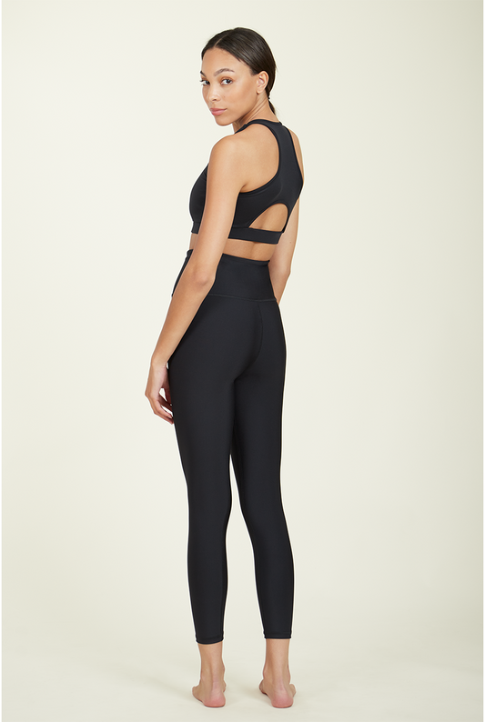 The Over-Time sports bra is made of 100% recycled materials and features a mesh racerback for ultimate comfort and freedom.