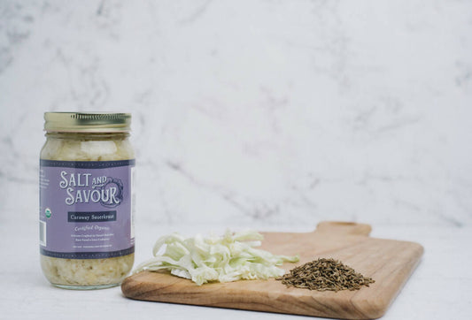 Salt and Savour Sauerkraut with Caraway Seed, Organic classic version of sauerkraut – the original. Caraway seed’s mild anise-like flavor adds a subtle, yet distinctive note to this sauerkraut.