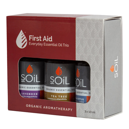 The Everyday Trio of organic essential oils Lavender 10ml, Tea Tree 10ml and Eucalyptus 10ml.Sold out -