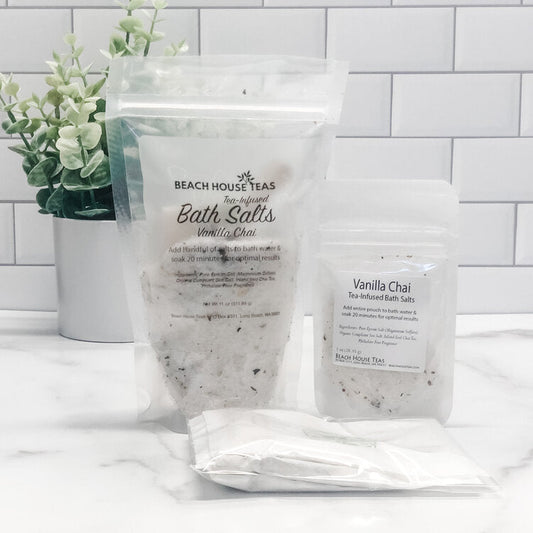 Vendor:Beach House TeasRegular price From $7.20Regular priceUnit price perSale price From $7.20Step into a world of comfort and tradition with our Vanilla Chai Salt Soak, a luxurious bathing experience steeped in the essence of soft vanilla and spicy clove. Crafted with care and infused with time-honored elements, this salt soak transforms your bath into an aromatic oasis.