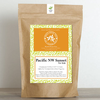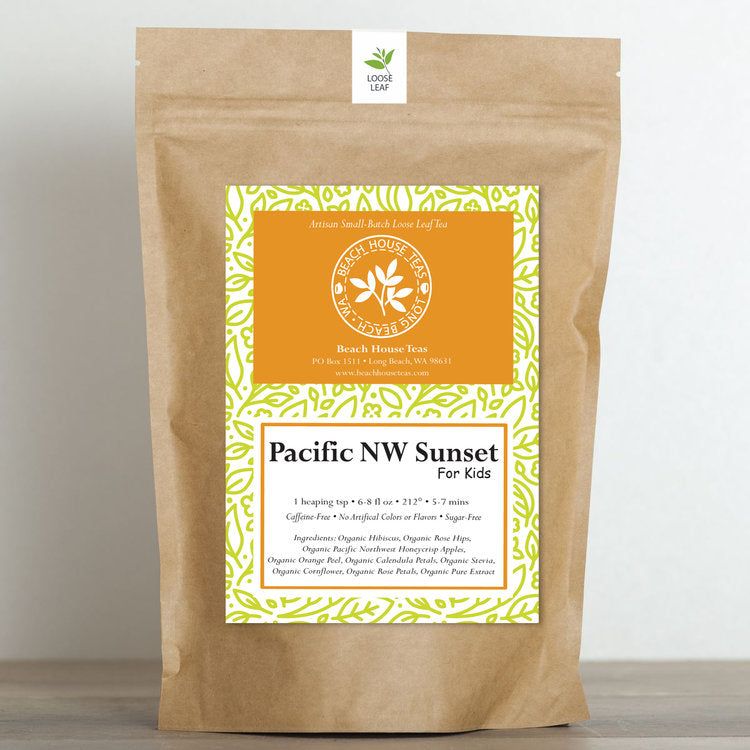 Let your kids embark on a flavor adventure with Pacific NW Sunset for Kids, a 100% organic, caffeine-free, and sugar-free loose leaf tea blend. This exquisite concoction is a tribute to the stunning sunsets along the Southwest Washington Coast.