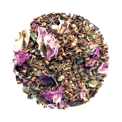 Indulge in the opulent beauty of Rose City Rooibos, a 100% organic loose leaf tea meticulously crafted to captivate your senses. This enchanting blend features the rich, earthy tones of red rooibos tea, delicately complemented by the elegance of rose petals and the refreshing essence of peppermint, all infused with pure extract.