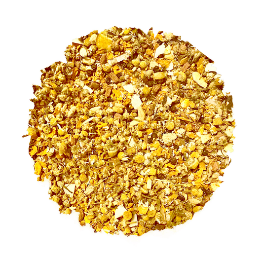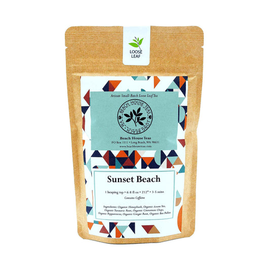 Sunset Beach Turmeric Tea is your invitation to experience the exquisite fusion of earthy turmeric, floral honeybush, sweet bee pollen, and a touch of black pepper. This tantalizing blend offers more than just a beverage; it's a journey to your favorite beach, where the sun bathes you in warmth and the world comes alive.