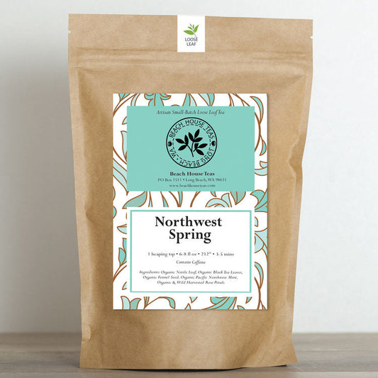 Experience the enchantment of spring in the Pacific Northwest with our Northwest Spring Organic Tea. This blend, crafted with 100% organic leaves, features the natural goodness of Pacific Northwest nettle leaf, black tea, fennel, Pacific Northwest mint, and delicate rose petals.