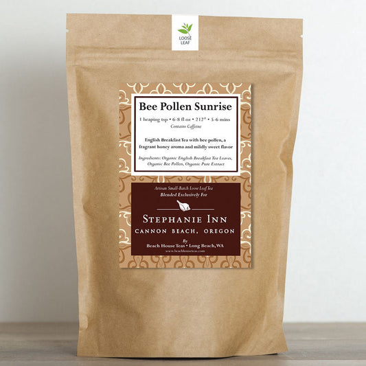 Bee Pollen Sunrise, a masterpiece among Stephanie Inn's artisanal loose leaf teas. This exquisite blend begins with the finest organic English Breakfast tea leaves, carefully curated to perfection. Infused with the golden richness of organic bee pollen, it emanates a fragrant honey aroma that beckons the senses. As each sip graces the palate, revel in the tea's middle sweet flavor, a harmonious balance achieved through the marriage of premium ingredients. Crafted with organic pure extracts, Bee Pollen Sunrise captures the essence of a vibrant morning sunrise, delivering a tea experience that's both indulgent and revitalizing.
