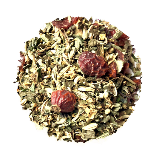 🌹 Rose Hips: Delicate and fragrant, these ruby-red wonders add a subtle sweetness and floral notes to the blend.